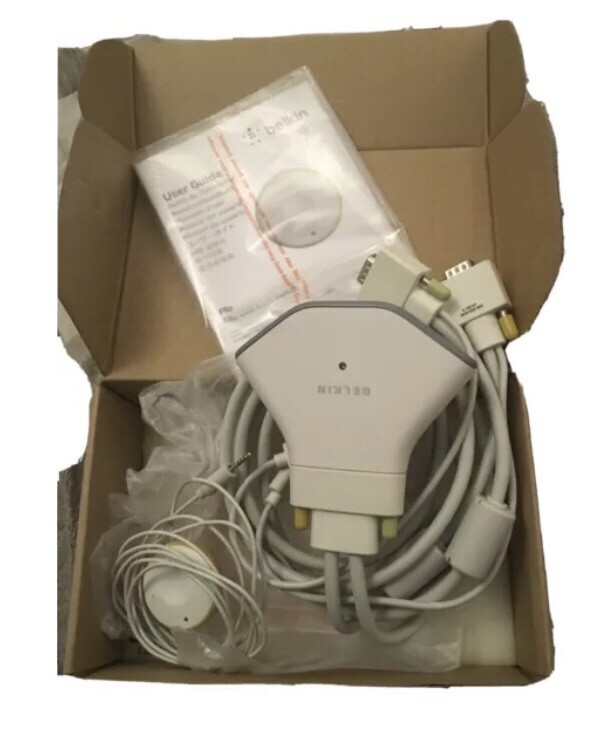 NEW Belkin Flip 2-Port USB + VGA KVM Switch with Wired Remote F1DF102U + Cables