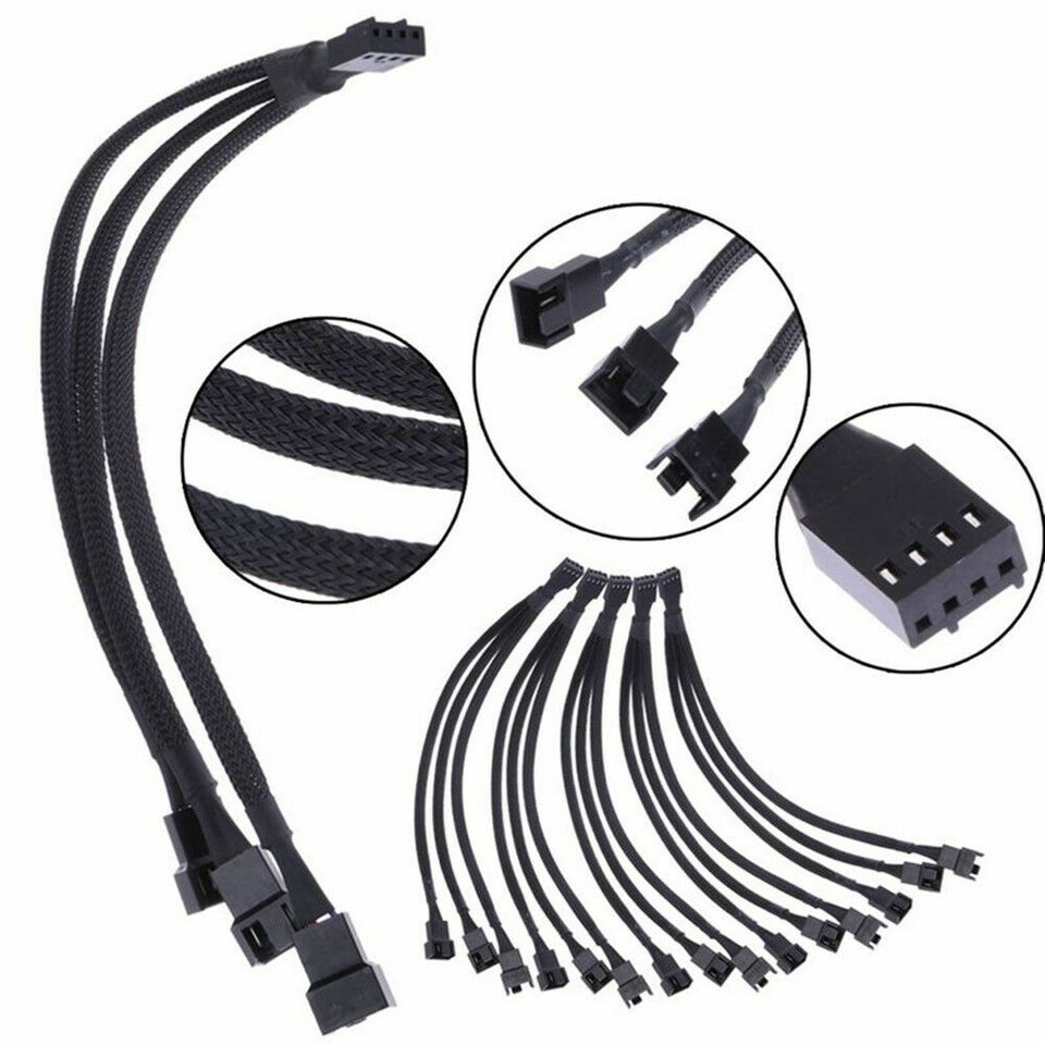 Black 4Pin 1 to 3 Way PWM Case PC Fan Splitter Hub Power Adapter Cable Connector-