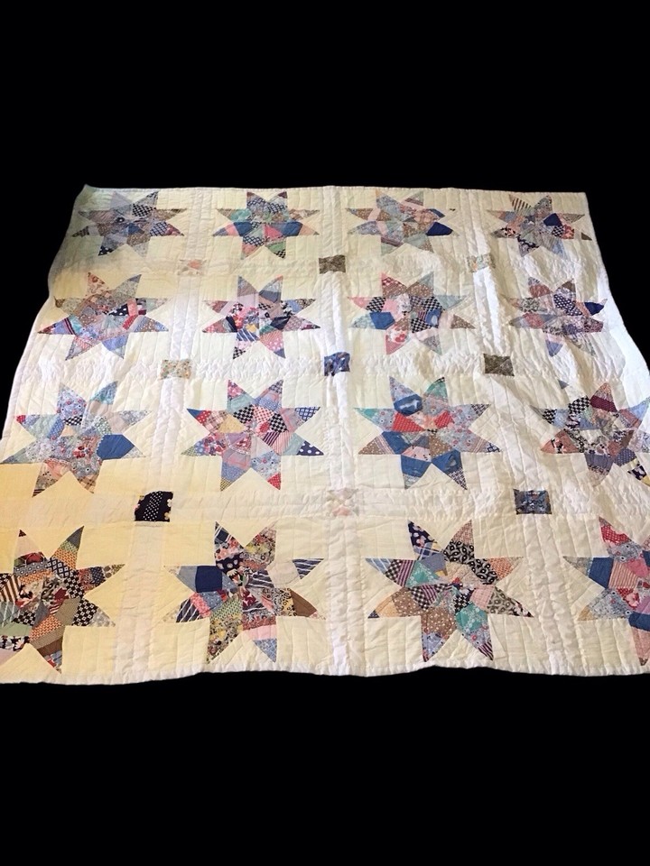 Antique Patchwork Quilt Larger Star Pattern Hand Quilted Vintage Cottage Core-