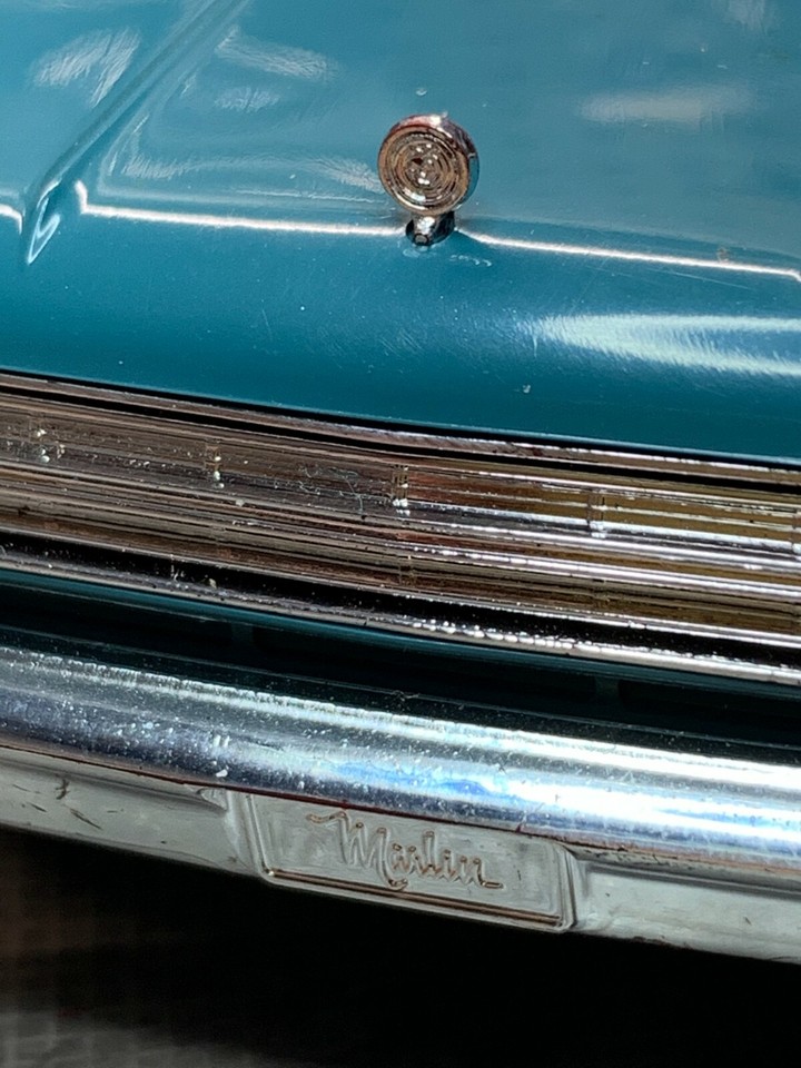 1966 AMC MARLIN PROMO OR FRICTION REPRODUCTION PLASTIC HOOD ORNAMENT-