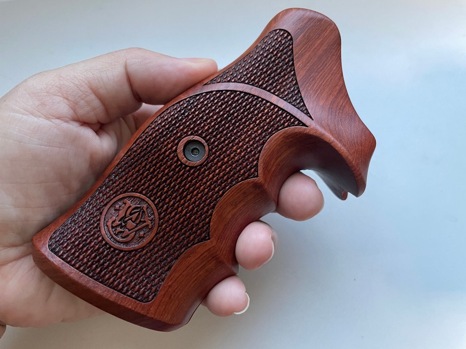 Premuim Checker, Hard wood Grips Decorate for S&W N FRAME ROUND BUTT Revolve#12-
