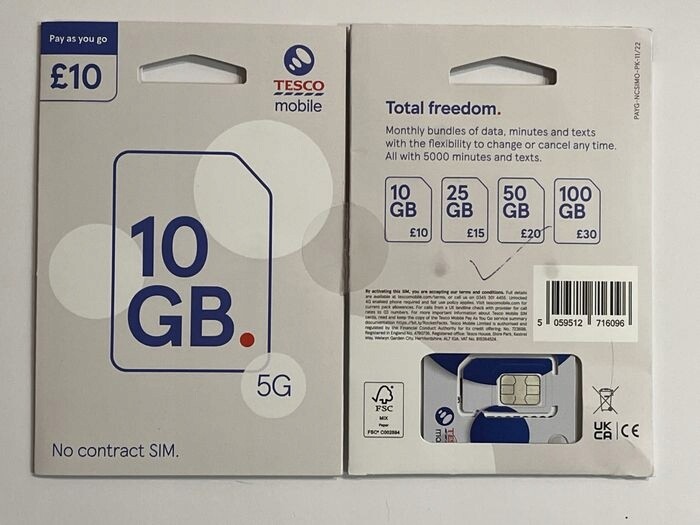 Tesco Mobile UK karta SIM Prepaid Card Roaming EU