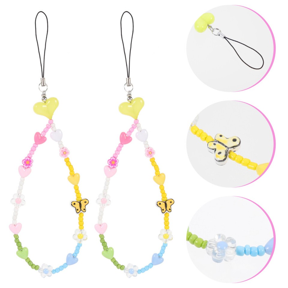 2 Pcs Mobile Phone Chain Miss Cellphone Charm Strap Beaded Lanyard