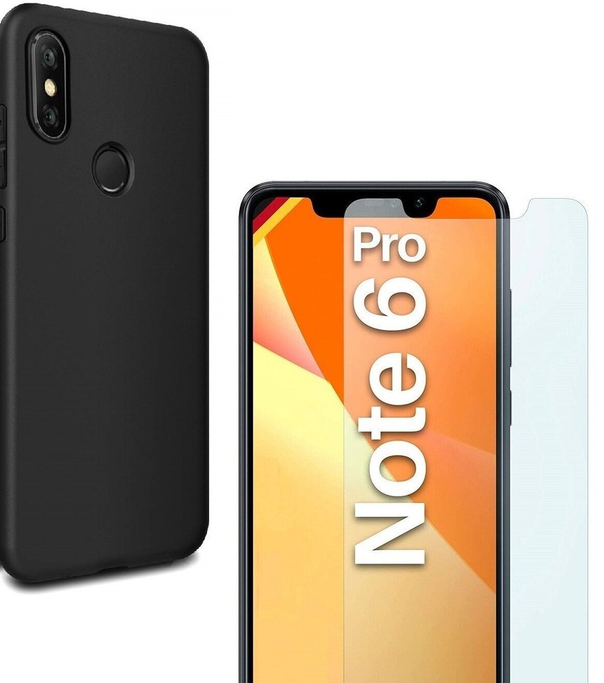 For XIAOMI REDMI NOTE 6 PRO TEMPERED GLASS SCREEN PROTECTOR + BLACK TPU GEL CASE