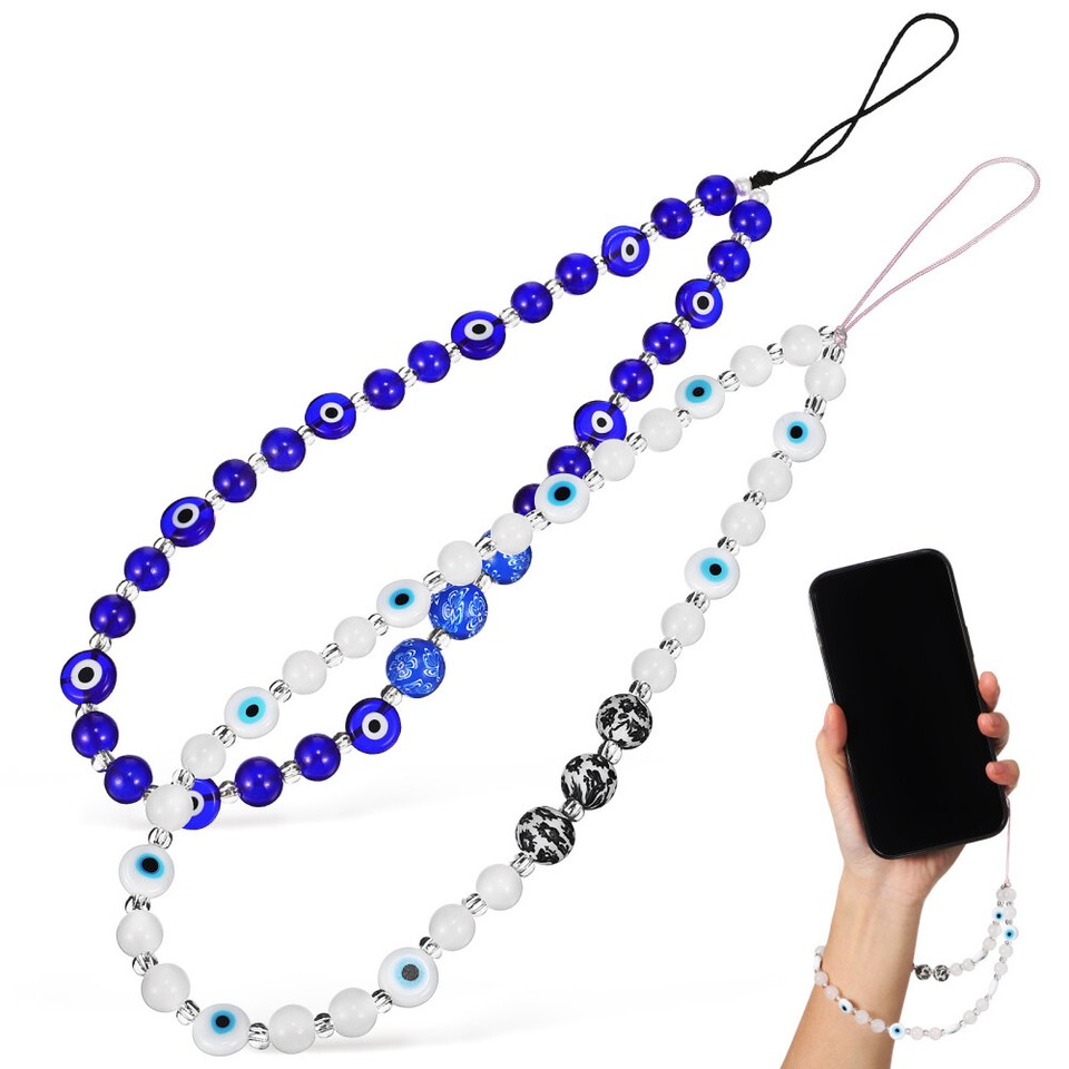 2 Pcs Lanyard Beads Phone Jewellery Chain Miss Strap Evil Eye Beaded Charm