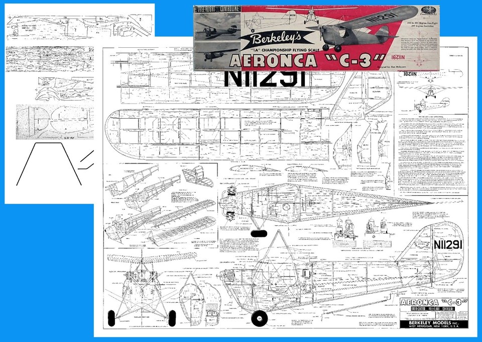 Berkeley Model Airplane Plans (FF-RC-UC): Aeronca C-3 1½" Scale 54" for .074-.15