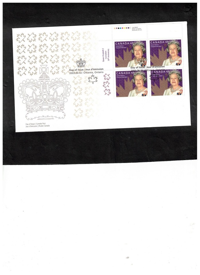 CANADA 2003 QUEEN'S 50 ANN. of CORONATION FDC** BL/4 cat #1987 BOX 511