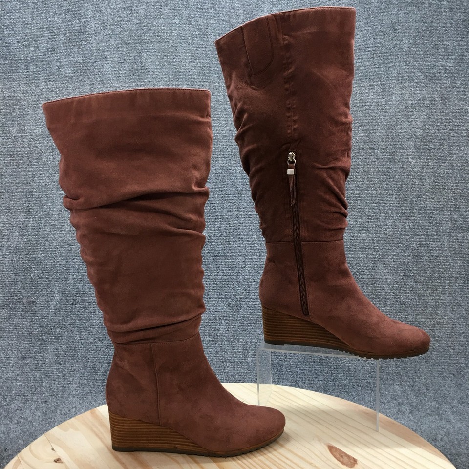 Dr Scholls Boots Womens 8.5 M Wide Calf Central Tall Pull On Wedge Boot Brown-