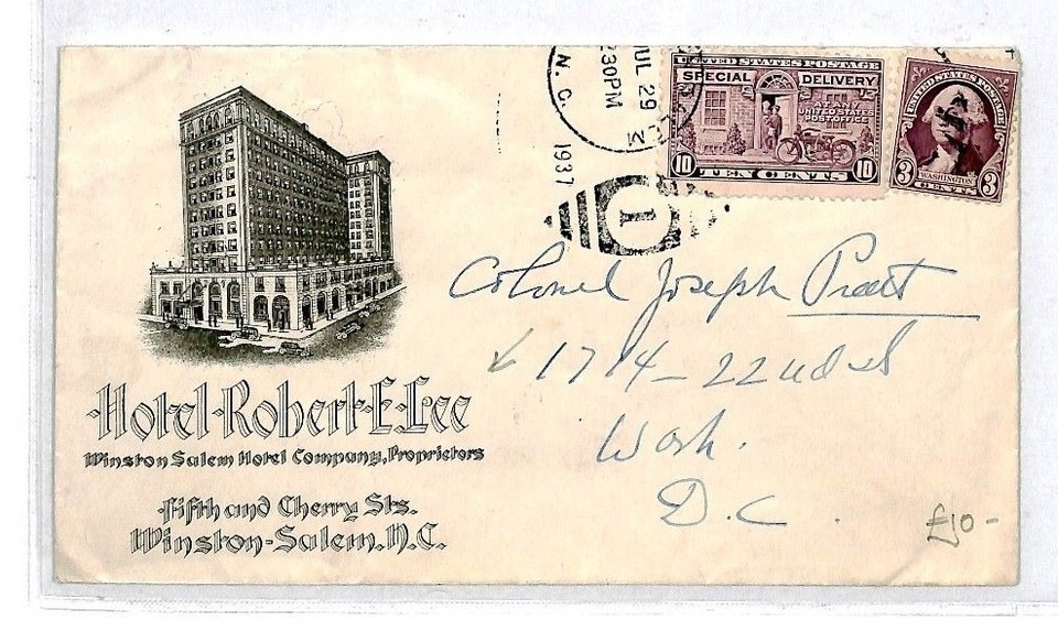 USA Advert Cover SPECIAL DELIVERY Winston Salem Hotel ARCHITECTURE 1937 CQ77