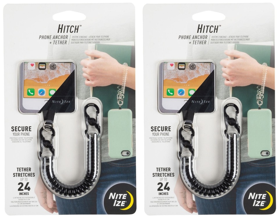 Nite Ize Hitch Phone Anchor + Tether - Black/Black (2-Pack)-