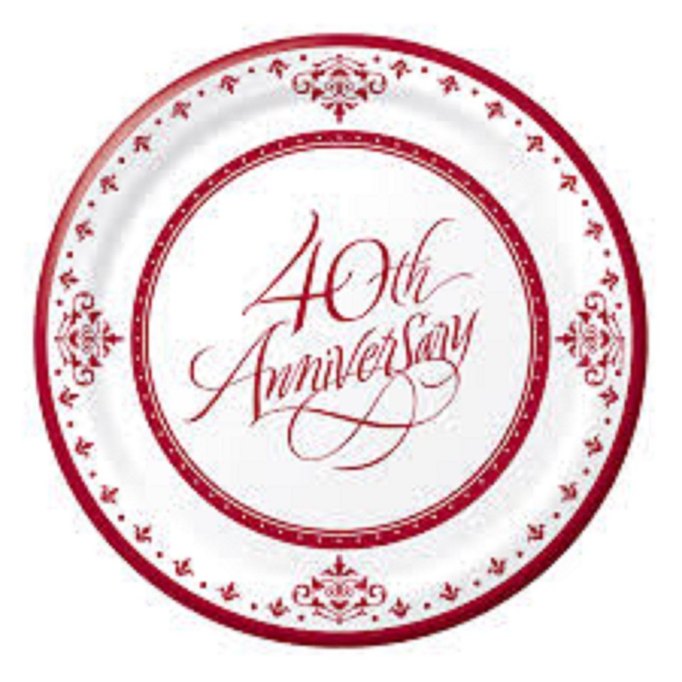 40th Ruby Wedding Anniversary Party Plates - Banquet/Dinner Size 26cm 18pk