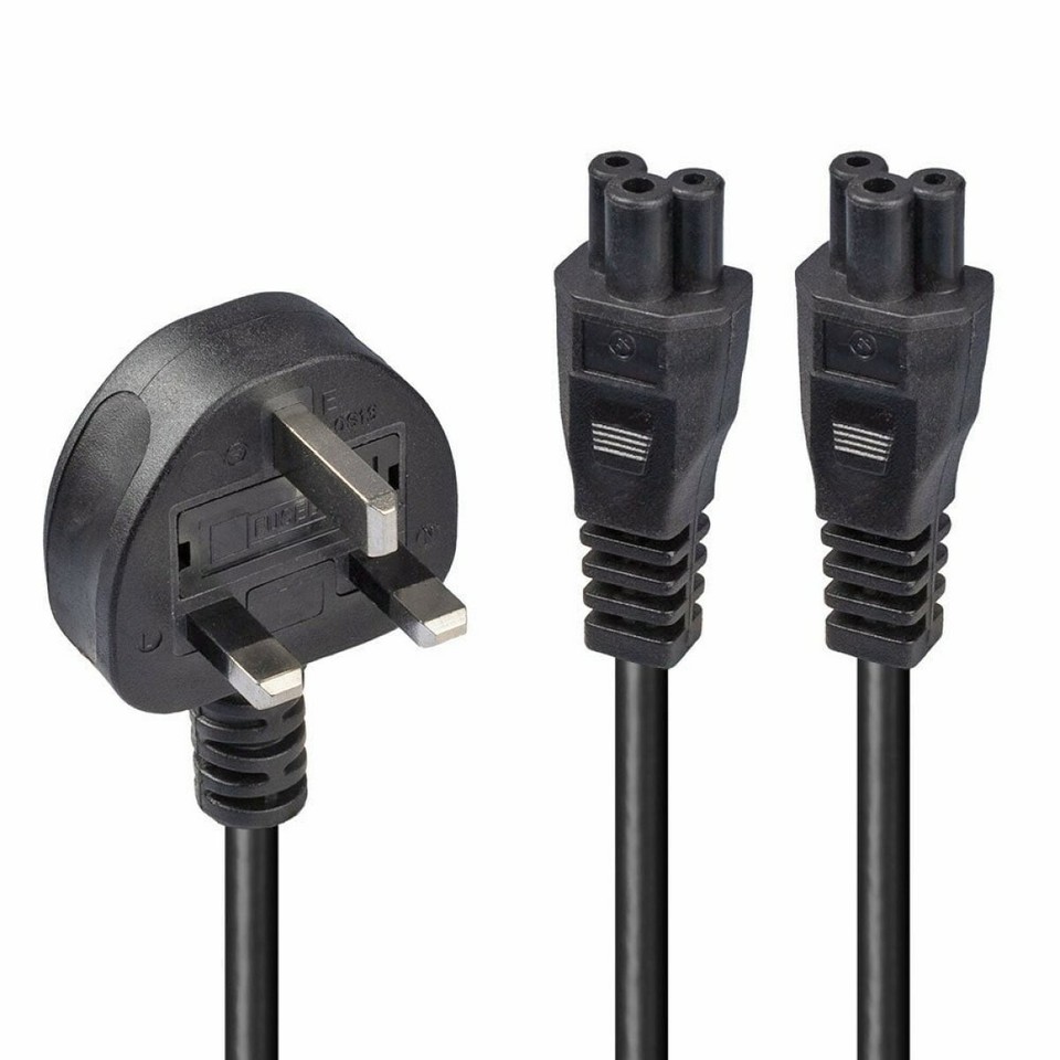 Lindy UK 3-Pin to Dual IEC C5 'Cloverleaf' Power Splitter Cable 2.5m Black 30428
