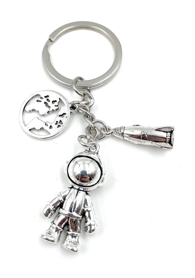 Astronaut Rocket Globe Space Travel Metal Keychain Lucky Charm