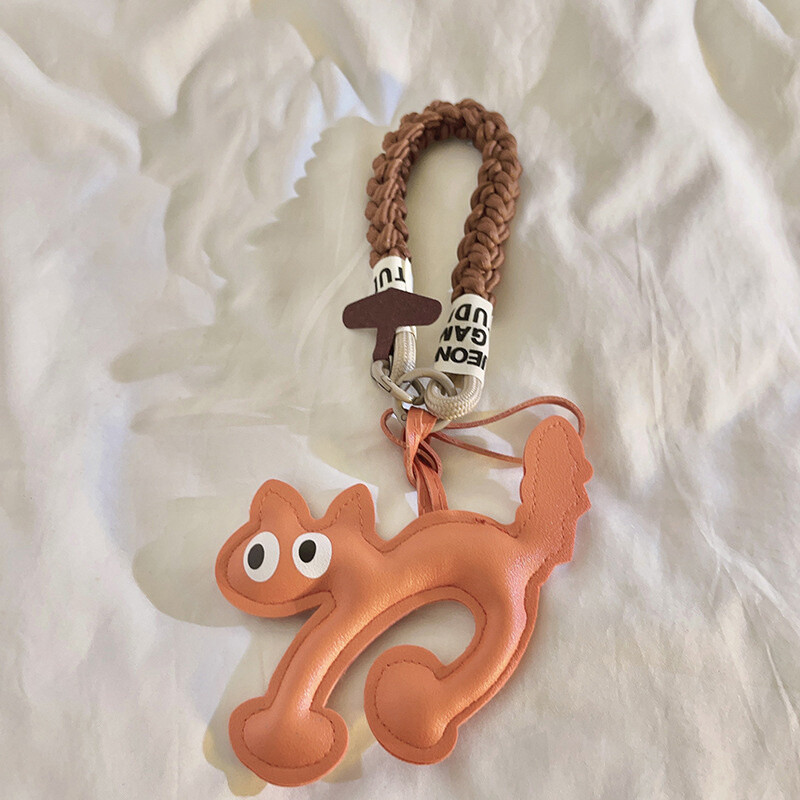 Cute Leather Cat Shape Phone Chain Pendant For IPhone For Samsung Huawei Xiaomi
