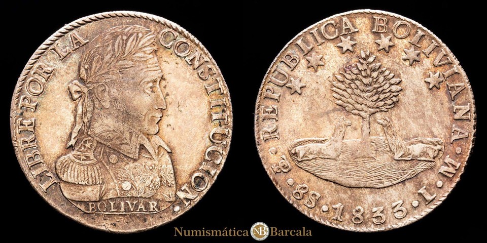 República de Bolivia 8 Soles (27,1g) 1833 Potosí Ensayador L·M KM-97 EBC/EBC