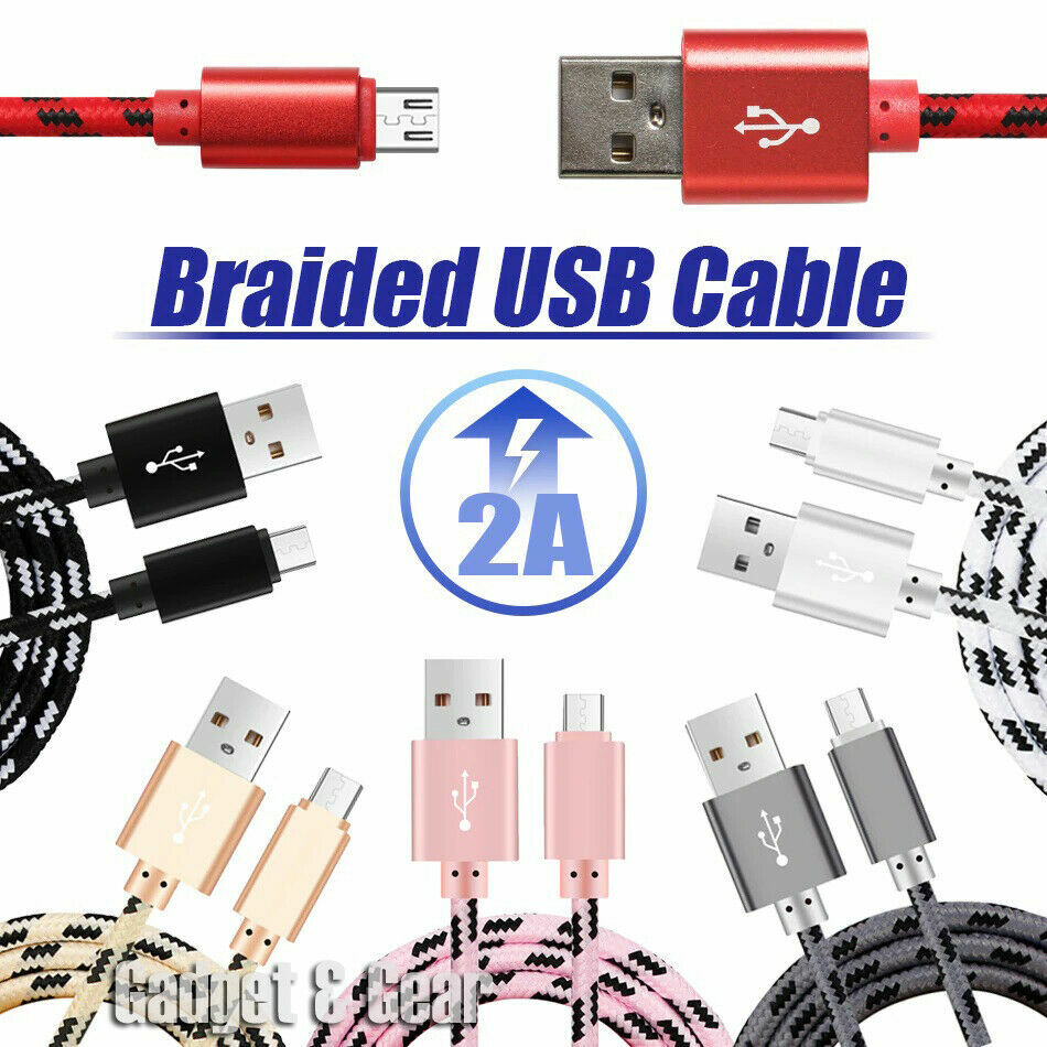 1M/2M/ Strong Braided Micro USB Data Sync Charger Cable Cord Android For Samsung