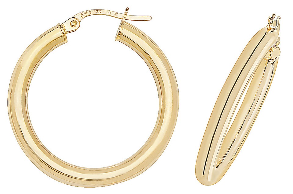 9CT GOLD HOOP EARRINGS CREOLES 25MM ROUND POLISHED PLAIN TUBE SLEEPERS GIFT BOX