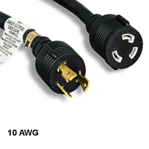 Kentek 3' ft 10 AWG Power Cord NEMA L5-30P to NEMA L5-30R 30A/125V SJT Black-