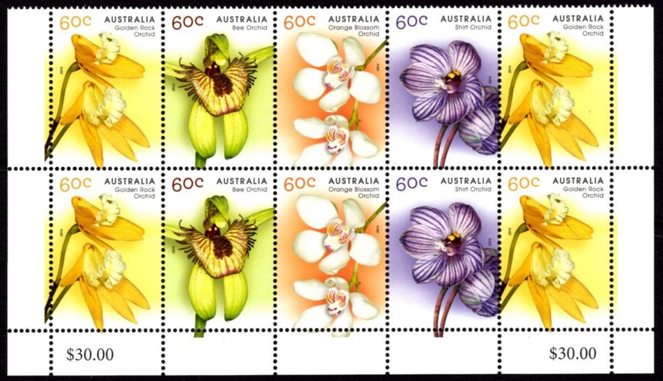 AUSTRALIA - 2014 'ORCHIDS' Block of 10 MNH [D3616]