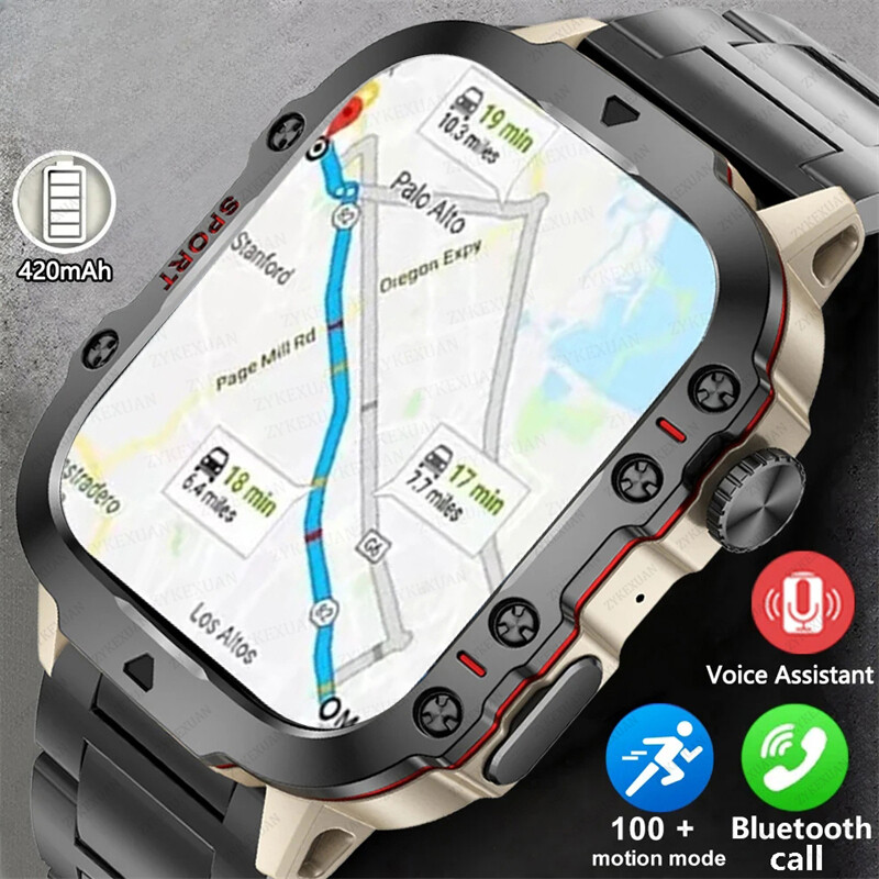Rugged Military Smart Watch Men Ftiness Watches IP68 Waterproof 2.01'' AI Voice-