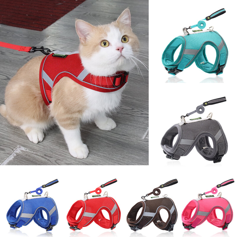 Cat Dog Adjustable Harness Vest Walking Lead Leash for Puppy Dogs Mesh Harness