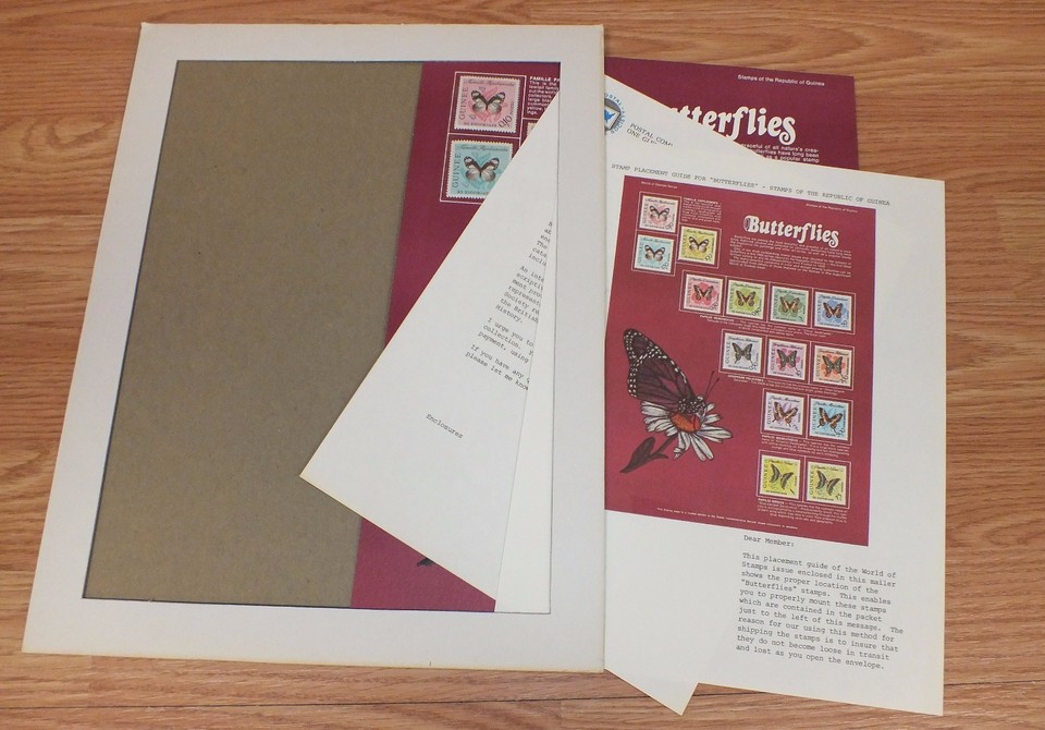 Authentic World Of Stamps Collectible Series Butterflies On Pink Paper W/ COA -