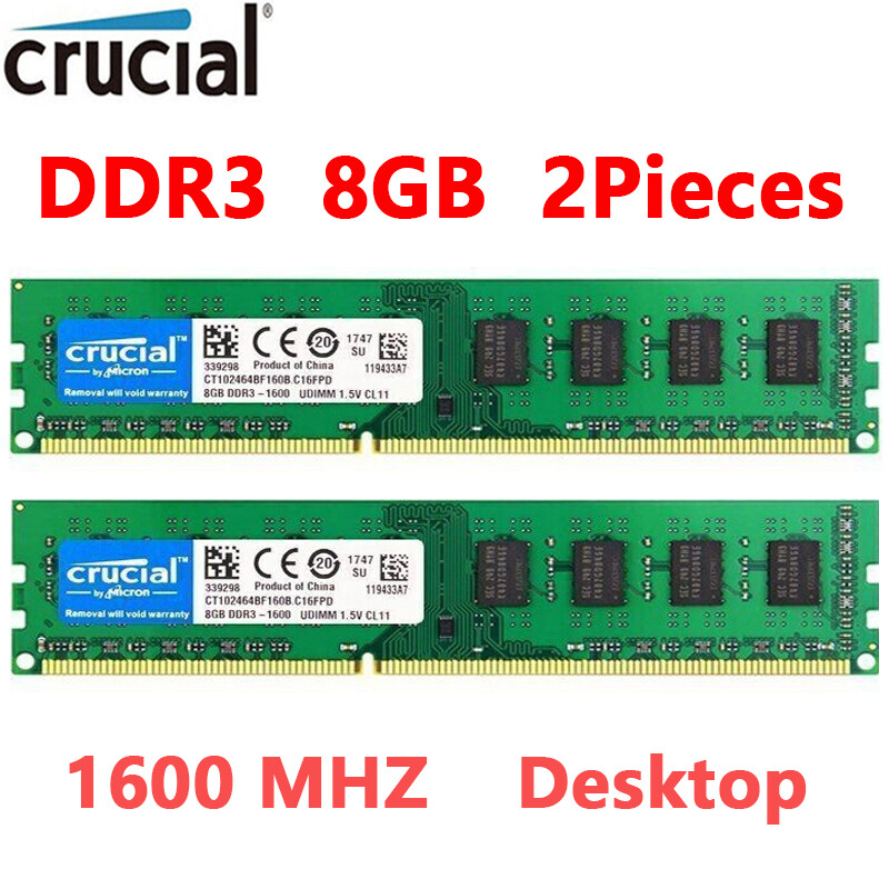 Crucial DDR3 16GB (2X8GB) KIT 1600 MHz PC3-12800 DIMM 240Pin non-ECC Memory RAM-