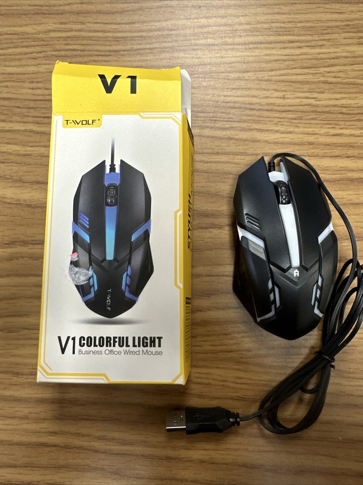 T-WOLF V1 Wired Gaming Mouse 3 Button 7 Colorful Backlight 1200 DPI Office Mouse