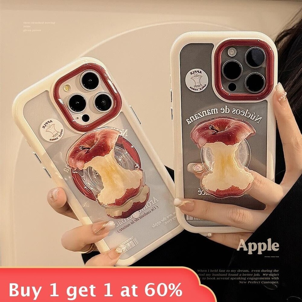 Red Apple Magnetic Bracket Phone case For iPhone 16 15 14 13 12 11 Pro Max XR XS