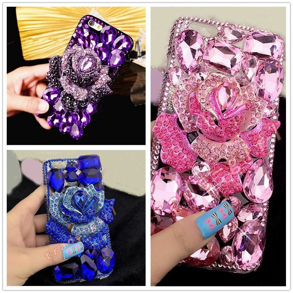 For Google Samsung iphone Wome Girl Bling Glitter Rhinestone Back TPU Phone Case
