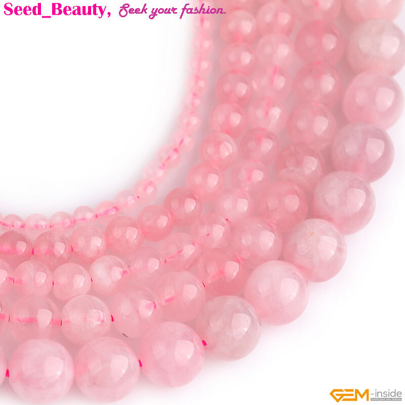 Natural Pink Rose Quartz Madagascar Crystal Beads For Jewelry Making 15" Round-