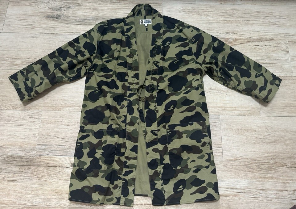 bape A Bathing ape Green camo kimono cardigan Jacket Size M , 100% New-