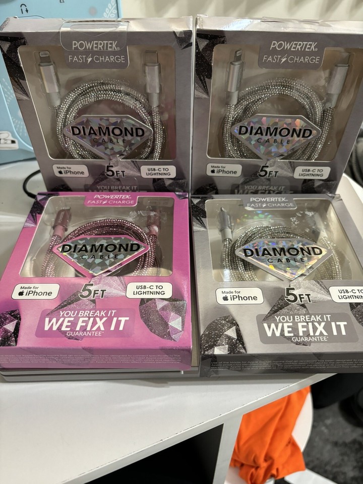 New Fast Charge USB-C to Lighting 5 Foot Cable TOTAL OF 4-3 Silver/1 Pink-