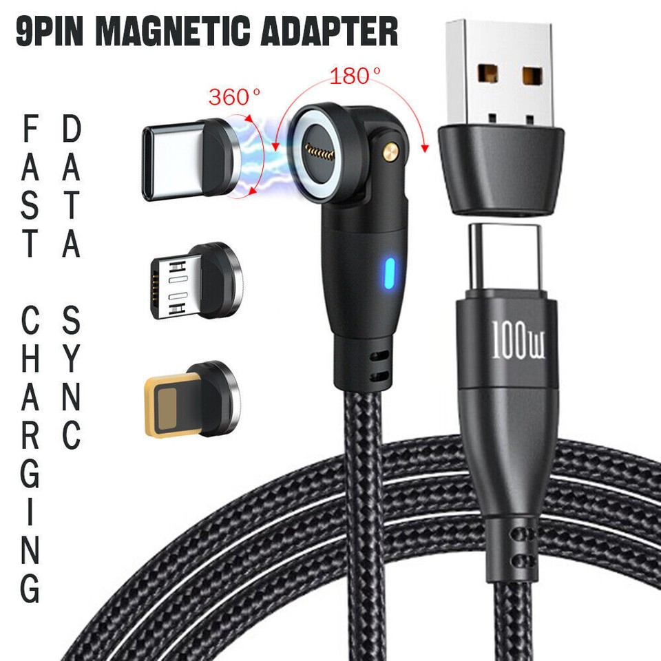 PD 100W Magnetic USB C Charging Cable Data Sync 540° Rotation Type C iPhone Tips-