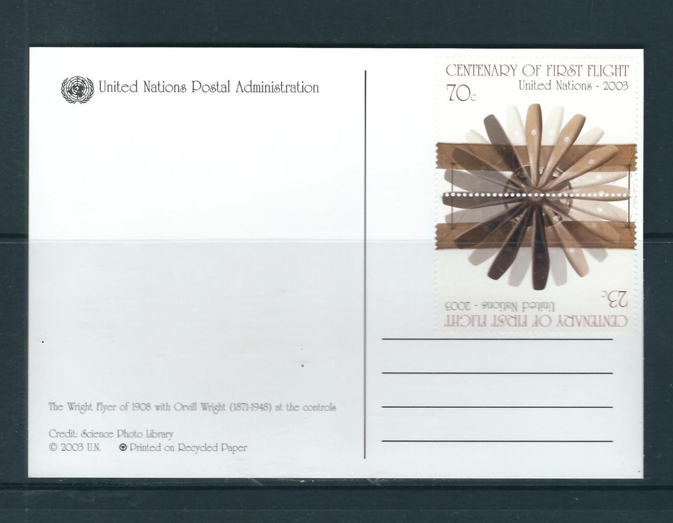 UN SC # NY 841a Powered Flight Centenary On A United nations postal Card .