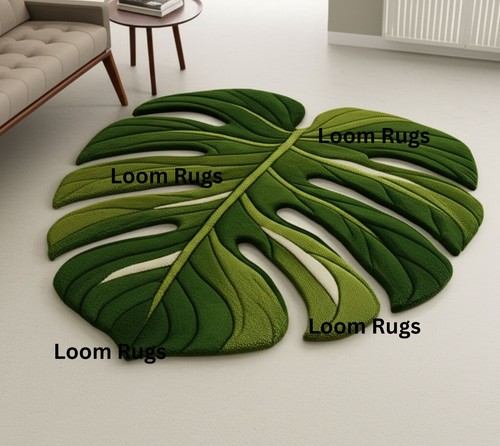 Monstera Leaf Shaped Green Handmade Tufted Area Rug – Modern Botanical Carpet