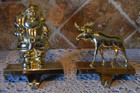 - 已結束 2025 年 10 月 25 日VINTAGE SANTA AND MOOSE STOCKING HANGERS~POLISHED BRASS~MINOR SCRATCHES, TARNISH二手repurposesurplus 100% 正面 (869)