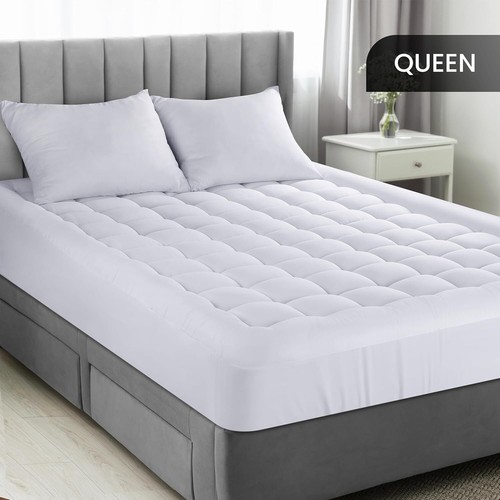 Queen Quilted Mattress Pad Deep Pocket 16" Soft Fluffy Topper Washable White