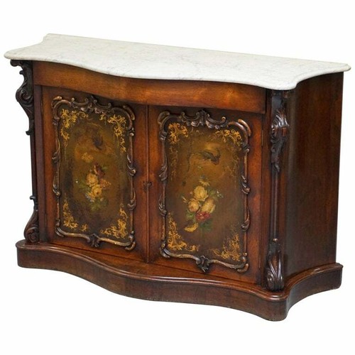 VICTORIAN MARBLE TOPPED SERPENTINE FRONTED VERNI MARTIN PAINTED CARVED SIDEBOARD
