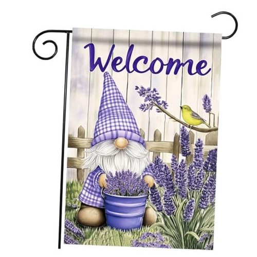 Welcome Spring Cute Gnome Floral Garden Flag Bird Lavender Small-12.5×18 inch