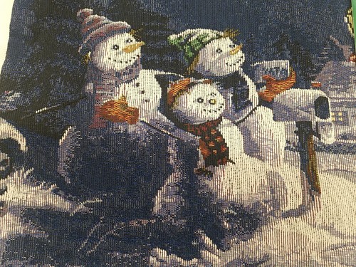 Christmas Winter Wonderland Snowman Snowmen Table Runner Navy Blue 13x70 Tassels