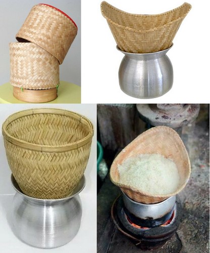 Thai Lao Sticky Rice Cooker Steamer BamBoo Basket Pot Kitchen Food Menu