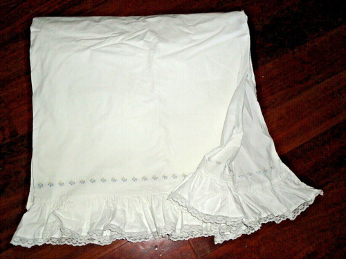 SPRINGS COTTAGE WHITE BLUE YELLOW EMBROIDERED LACE RUFFLED TWIN FLAT SHEET 70X90