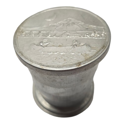 Vintage Collapsible Folding Pocket Travel Size Metal Cup Mountain Canoe USA
