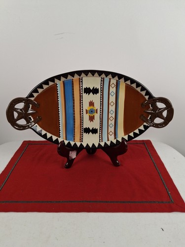 Cracker Barrel Stoneware Centerpiece Aztec Southwestern Horseshoe Handles
