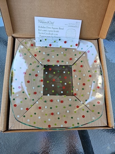 - 已結束 2025 年 12 月 2 日Pampered Chef Holiday Dots Square Bowl Clear Polka Dots 9.5" Serving Dish #3010二手mtmyattic 100% 正面 (860)
