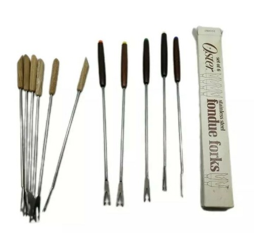 Oster Fondue Forks set of 5 Stainless Steel plus 6 wood
