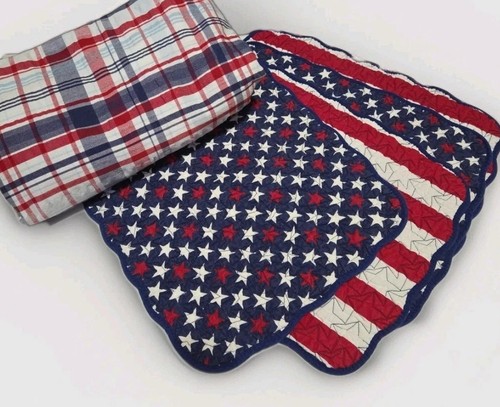 Tablecloth & 4 Placemats Celebrate Americana Plaid 56×90" 4th July USA Picnic