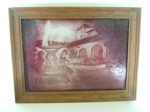 Framed Glass Plate Engraved Signed P. Waechter Art Deco