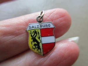 ANTIQUE VINTAGE STERLING SILVER SALZBURG GERMAN OLD ENAMEL TRAVEL CHARM PENDANT
